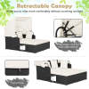 Outdoor Wicker Daybed, Hand-Woven Rattan Daybed with Retractable Canopy, 2 Side Tables, Soft Cushions, Chaise Loveseat for Garden Backyard