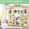 9-Tier Bamboo Plant Stand 2-In-1 High-Low Potted Plant Holder Shelf with Hanging Rack