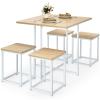 5pcs Compact Dining Table Set with 4 Square Stools & Metal Frame for Small Space Pub Apartment