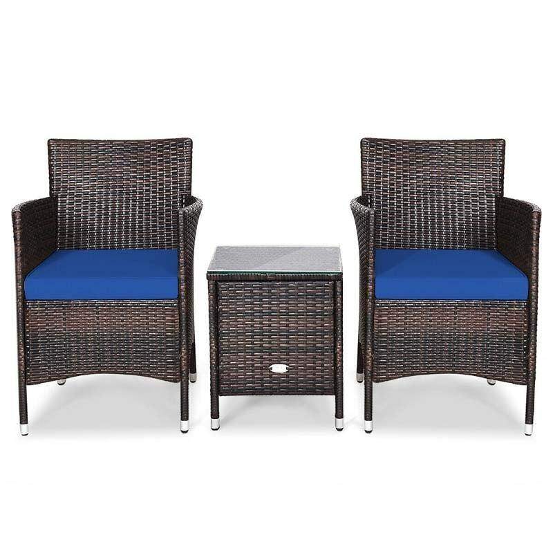 3 Pieces Patio Rattan Wicker Furniture Sets with Table - Bestoutdor