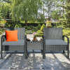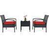 3-Piece Rattan Patio Conversation Set Wicker Bistro Furniture Set Cushioned Sofa Deck