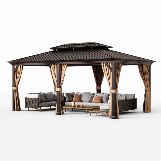 • Removable Privacy Curtains: This metal outdoor gazebo is equipped with 6 side curtains, which are connected by hook and loop fasteners. They are removable with convenient hooks and can be easily put down to create excellent privacy. When you don't need to use them, you can store the curtains to one side with hook and loop fasteners to get full ventilation.