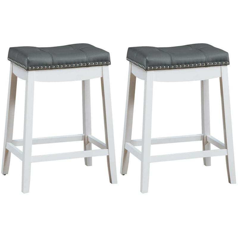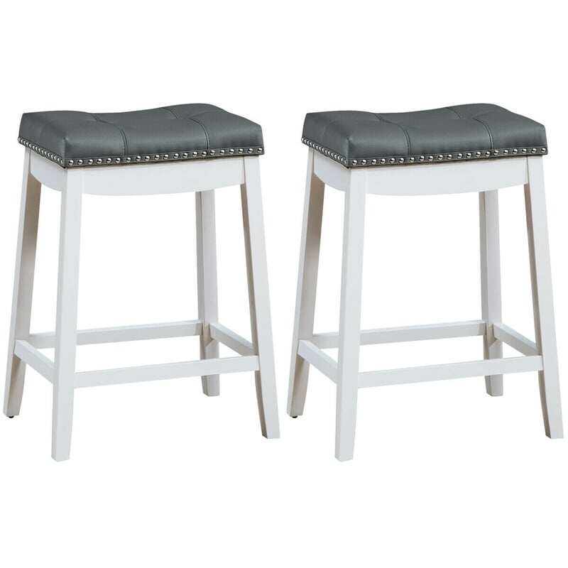 Set of 2 Nailhead Saddle Bar Stools 24"  Backless Counter Height Stool with Cushion