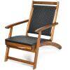 Patio Folding Rattan Lounge Chair, Acacia Wood Wicker Deck Lounge Chair with Retractable Footrest, Outdoor Chaise Lounge for Garden & Poolside