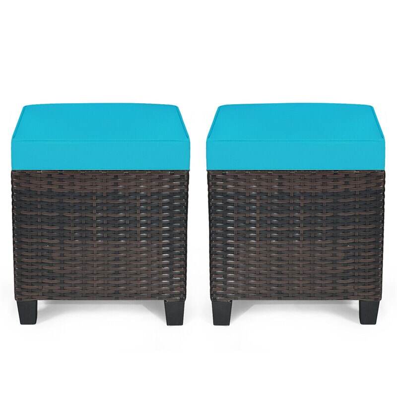 2Pcs Patio Rattan Ottoman Outdoor All Weather Wicker Cushioned Seat Foot Rest Ottoman