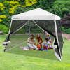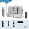Enjoy outdoor leisure time with your family and friends! Our brand new instant pop-up canopy tent measures 10 x 10 x 7.8-8.4 ft (L x W x H), featuring a large shading area for various outdoor activities, such as backyard family gatherings, lawn BBQ parties, camping, picnics, beach parties, and more. Thanks to the easy center push mechanism, the pop-up canopy tent can be easily set up and taken down without the tools required. And the telescoping legs can be adjusted to 3 height levels (7.8 ft, 8.1 ft, 8.4 ft) for different occasions as per your needs. What's more, the instant canopy is crafted with durable Oxford fabric and coated with premium silver, ensuring excellent UPF 50+ sun protection and rain resistance. And there exist mesh sidewalls on 4 sides, allowing you to enjoy the beautiful scenery while keeping out the bugs. Plus, the canopy frame is constructed of powder-coated steel, which is anti-rust and durable for long-term outdoor use. At the same time, we also supply extra 4 wind ropes, 8 metal stakes, 4 sandbags, and 4 plastic pegs with stake holes to firmly fix the canopy on the ground, increasing stability and safety. Another key point to saying, our roller bag is designed with 2 wheels for easy movement and a carrying bag for easy storage, so you can easily take the canopy tent to the beach, campsite, lawn, park, or anywhere you want.