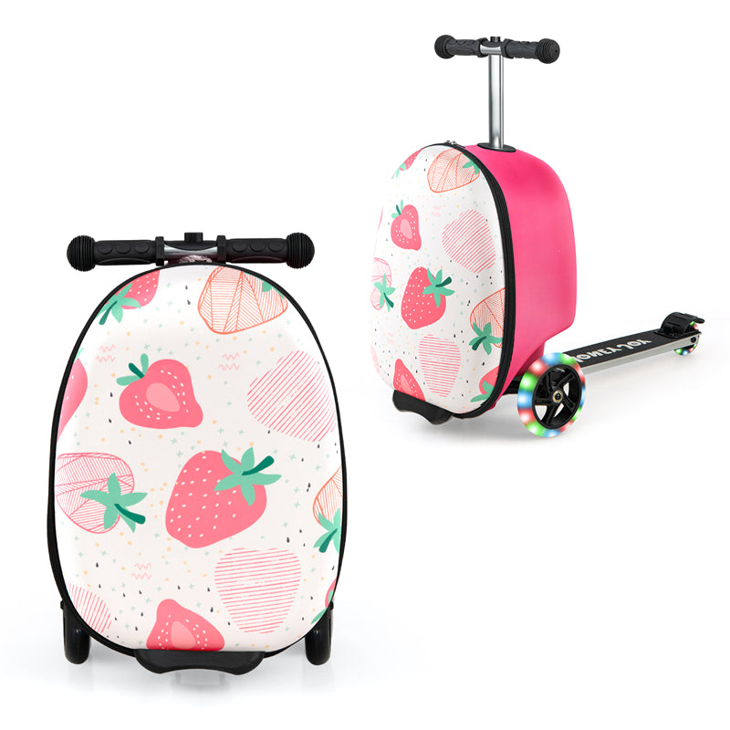 - Easy-To-Steer Scooter with Lighted Wheels: The 2-in-1 kids' ride-on scooter luggage comes with a retractable rod and anti-slip TPR handle, which facilitates kids in different sizes to control the direction and ensures a stronger grip. Another key point to saying, PU wheels with LED flashing lights will illuminate red, green, and blue 3 color lights when friction is generated to create a cool effect. In addition, the shock-resistant PU wheels and the brake system ensure smooth yet safe riding on kinds of roads. And a large anti-slip deck with a safety footbrake enables kids to safely steer the kids' luggage outside.