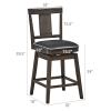 360° Swivel Wood Bar Stool, 24" Counter Height Dining Chair with Back, Leather Padded Seat & Rubber Wood Legs, Upholstered Barstool for Kitchen Island