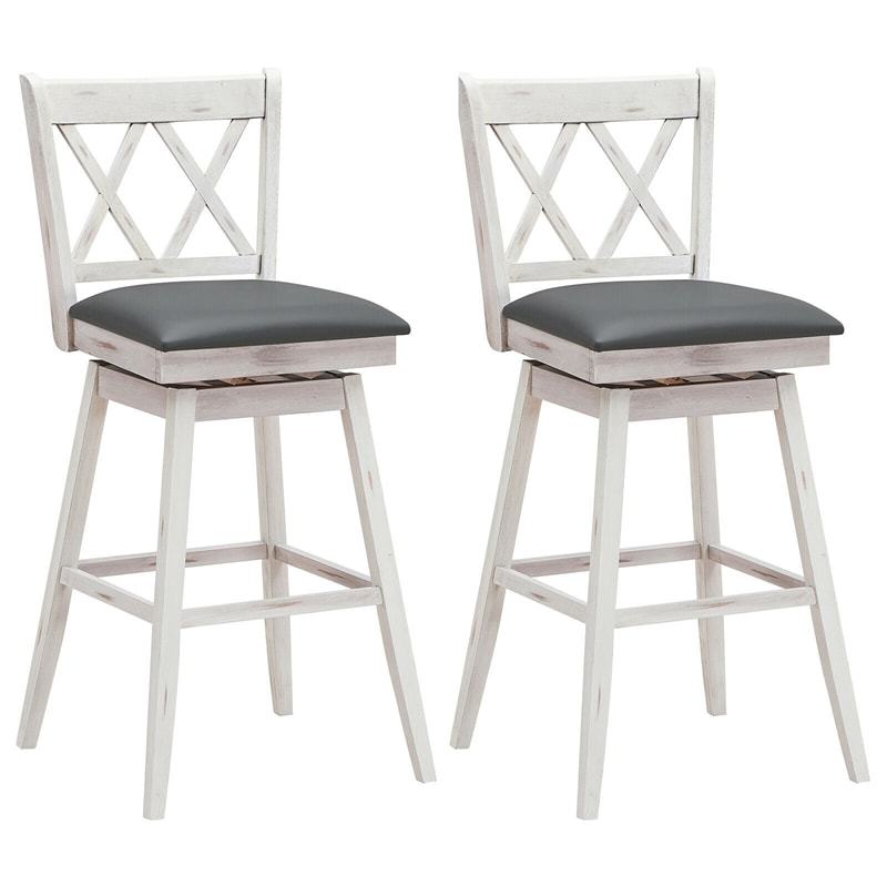 Swivel Bar Stools Set of 2, Rubber Wood 29.5" Counter Height Dining Chairs with Upholstered Cushions, Ergonomic Backrests & Footrests