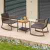 Suitable for Various Places: The 3-piece patio rocking conversation set allows you to enjoy leisure time with your loved one. Consisting of 2 rocking chairs, 2 seat cushions, and 1 storage coffee table, the rocking bistro set is widely used for the porch, poolside, balcony, courtyard, and more.