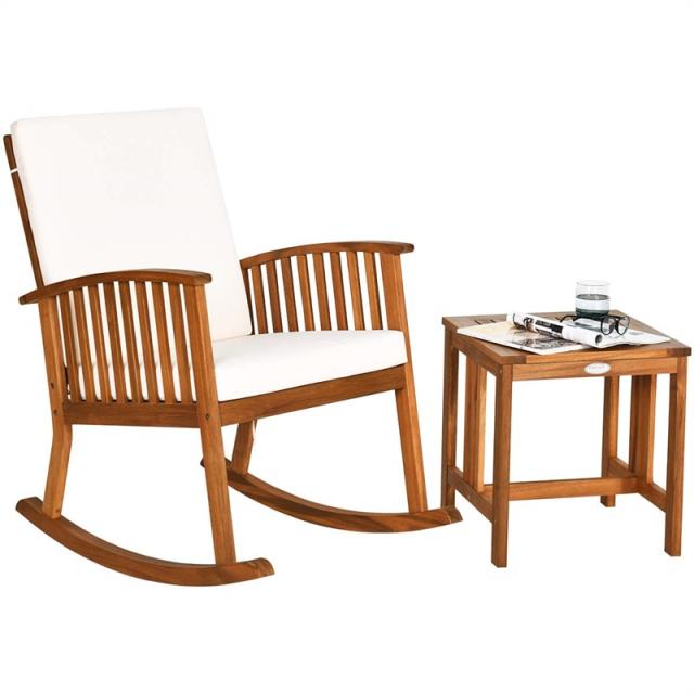 Create a relaxing outdoor seating zone you've always dreamed of with our 3-piece rocking bistro set! Including 2 rocking chairs, 2 seat cushions, and 1 storage coffee table, this patio rocking conversation set will be a perfect addition to your indoor or outdoor settings. The outdoor rocking chair with soft cushions rocks back and forth smoothly, easily taking your whole day’s tiredness away. And, the coffee table comes with an extra storage shelf to keep items at hand. Made of sturdy metal frame, durable rattan PE rattan, and natural acacia wood, the outdoor furniture set will ensure a longer service life. You can place this rocking bistro set on your porch, poolside, or balcony to enjoy the morning coffee and pleasant chat with your friend or family!
