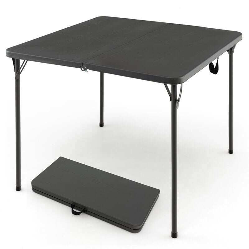 34" Square Folding Card Table Portable HDPE Outdoor Picnic Dining Table with Metal Frame & Carry Straps