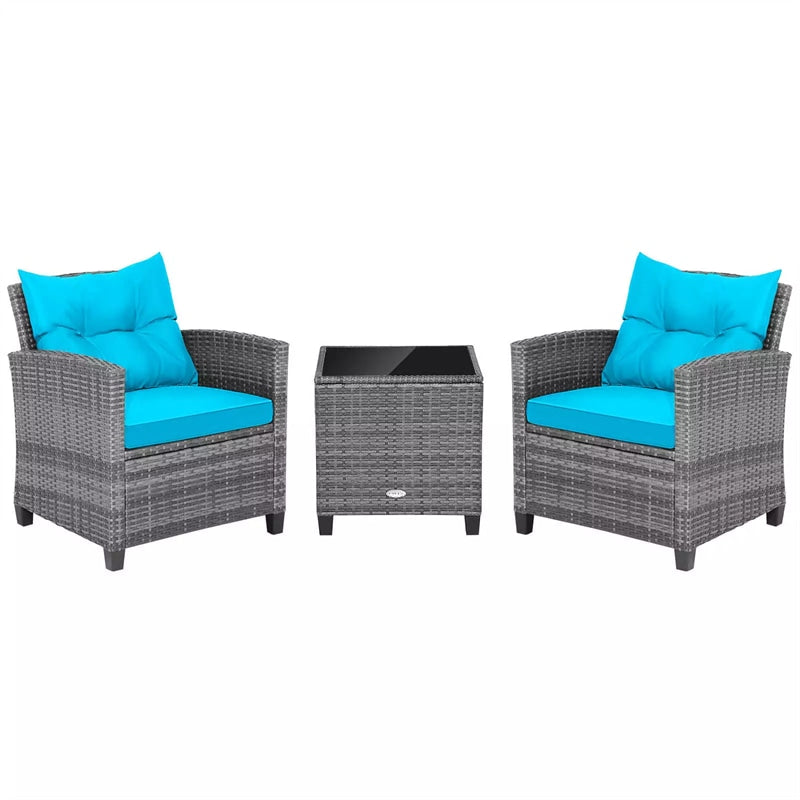 Home>Patio Conversation Sets>3PCS Patio Rattan Furniture Set Outdoor Conversation Set Wicker Bistro Set with Cushioned Chairs & Tempered Glass Side Table>