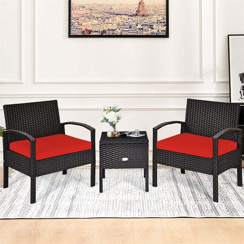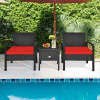 3 PCS PE Rattan Wicker Patio Conversation Set with Removable Cushion & Coffee Table