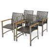 4 Pcs Outdoor PE Wicker Patio Dining Chairs Heavy-Duty Metal Frame Armchairs with Acacia Wood Armrests