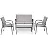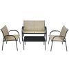 4 Pcs Patio Furniture Set Loveseat Sofa Table Steel Frame Garden Deck Conversation Set with Glass Top Coffee Table