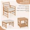 Combined with unparalleled comfort and versatility, the 5-piece wicker patio conversation set is designed to elevate your outdoor living. Each chair and ottoman are equipped with soft and elastic cushions filled with high-density fillings, ensuring optimal comfort and relaxation. The ottomans are also perfect as footrests, side tables, or additional seats for your various needs. The 2-tier side table provides ample storage space for snacks, drinks, and other essentials. Crafted with durable and elegant PE rattan in a natural color, the outdoor cushioned furniture set is built to last, while the galvanized metal frame guarantees stability. With its inviting appearance, this wicker rattan patio furniture set is the perfect addition to any outdoor space, creating a cozy and stylish atmosphere for you to enjoy.