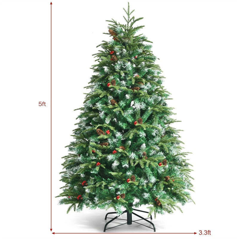 • Pre-Decorated Lush Christmas Tree: Coming with 581 branch tips, 28 plump pine cones, and 28 clusters of red berries, this artificial Christmas tree has a lush and charming appearance. More, the snowy design on branch tips enhances the wintry vibe and natural vividness.