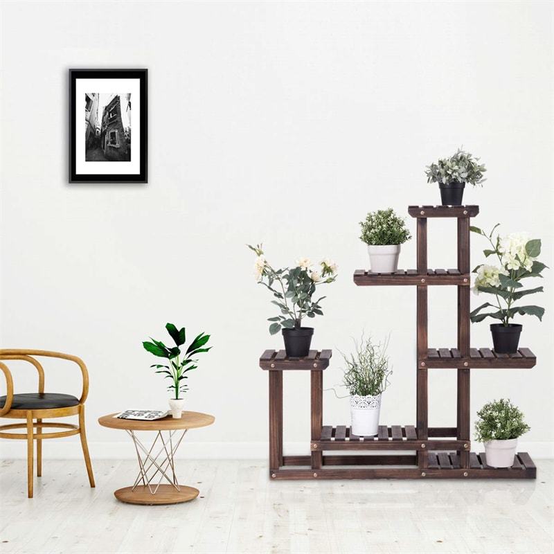 • Multi Layers Plant Stand: Designed with multiple tiers, this wooden plant stand provides you with enough space for placing different kinds of potted plants (at least 10 pots). Moreover, the reasonably high-low ladder structure of this plant rack ensures that the plants in each layer have sufficient growth space and sunshine.