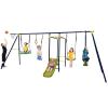 Create a memorable childhood with this 7-in-1 kids' swing combo set! Coming with a U-shaped swing, a sauce swing, a 2-person glider, a slide, 2 gym rings, a monkey bar, and a basketball hoop, this 7-in-1 outdoor playset for kids and toddlers will be a great gift for boys and girls aged 3 to 10. Framed with powder-coated steel tubes, the backyard swing set shows excellent performance in durability and sturdiness, which can support up to 660 lbs. Meanwhile, the durable PE material and wear-resistant Oxford cloth ensure long-lasting use. 8 ground stakes are included for extra stability. Therefore, this multifunctional outdoor swing set will be a wonderful accompaniment for your kids from 3 to 10 years old. And you can adjust the height of the swing from 34.5" to 50.5" as the little one grows. Likewise, you can place it in the backyard, garden, park, playground, etc.