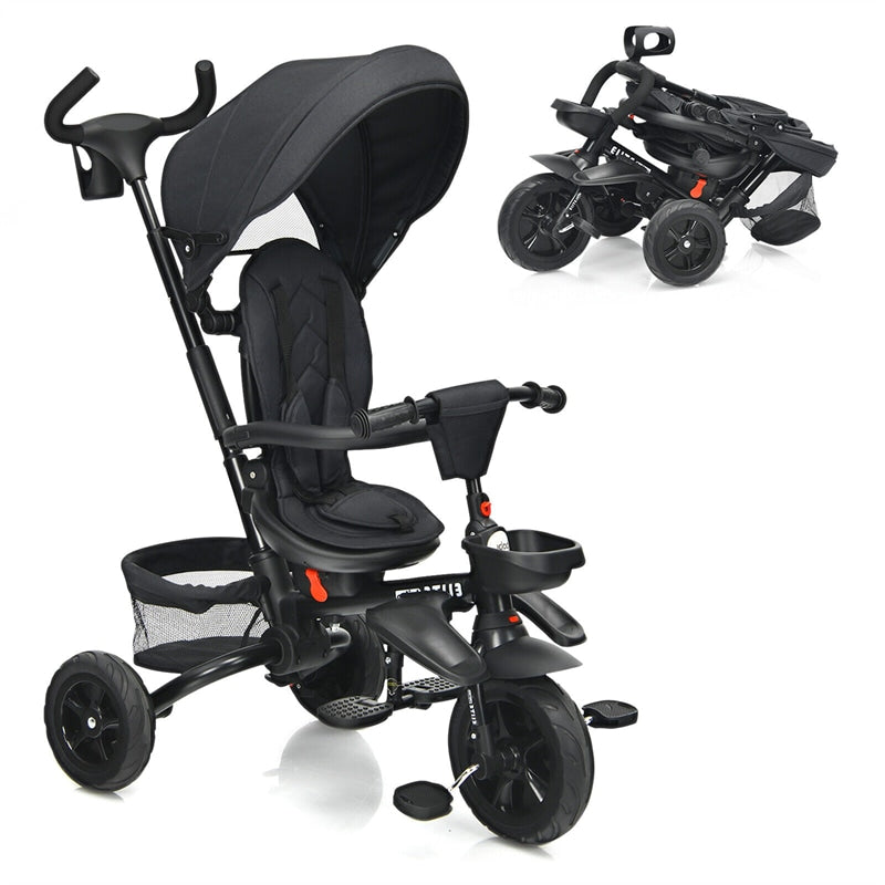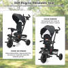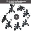 7-In-1 Multifunctional Tricycle for Toddlers: This kid's tricycle can be used as a toddler tricycle, steering tricycle, learn-to-ride trike, stand-alone trike, or classic trike, meeting the needs of baby at different growth stages. This 7-in-1 toddler tricycle also comes with a 360-degree rotatable seat, thus your curious baby can better interact with you face-to-face. Plus, the seat can be moved forward and backward as well as reclined so that your baby can sit comfortably.