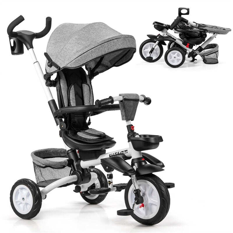 7 in 1 Folding Baby Tricycle Toddler Bike Stroller with Adjustable Canopy, Removable Push Handle, Rotatable Seat