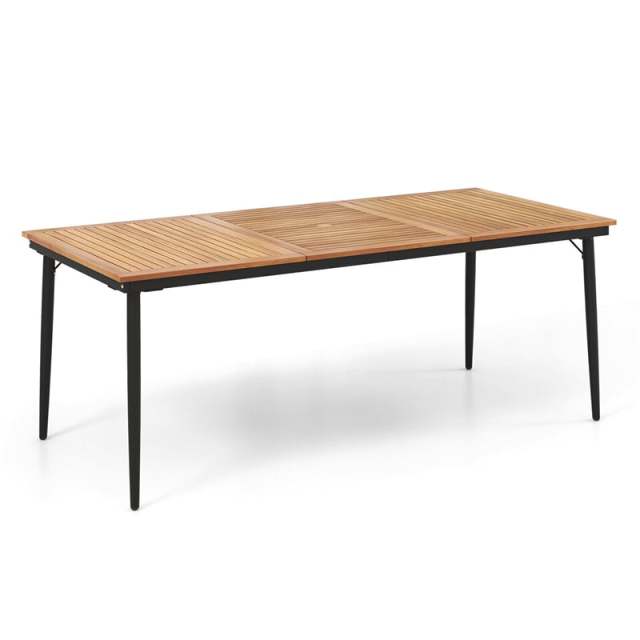 79" Acacia Wood Dining Table 8-Person Patio Table Outdoor Indoor Rectangular Bistro Table with 1.9” Umbrella Hole & Metal Legs