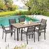 • Perfect Dining Set for 6: This 7-piece patio dining set includes a large rectangle dining table and 6 matching fabric chairs, perfectly accommodating 6 people. Whether for backyard barbecues, porch parties, or poolside feasts, it ensures everyone can dine in comfort and style.