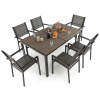 7 Piece Outdoor Dining Set Metal Frame Patio Furniture Set with 6 Stackable Chairs & Large Rectangle Table, Backyard Garden Dining Table Set for 6