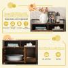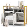 Large Cat Litter Box Enclosure 2-Door Cat Washroom Cabinet Wood Hidden Cat House with Winding Entry, Scratcher & 2 Compartments