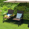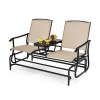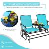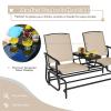 Outdoor 2-Person Rocking Loveseat Patio Bench Glider Chair with Center Tempered Glass Table