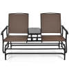 Home>Outdoor Seating>2-Person Outdoor Glider Chair with Center Tempered Glass Table, Steel Frame & Breathable Mesh, Patio Rocking Bench for Porch Garden Poolside>