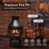 Home>Fireplaces>Wood Burning Chiminea, Cast Iron Outdoor Fireplace Fire Pit with 2-Piece Log Grate, 360° Fire Retardant Mesh Cover, Rain Cap & Poker for Garden Patio>