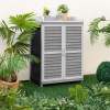• High-quality Construction: Mainly made of natural fir wood, the patio garden storage cabinet is solid, strong, and durable for reliable use. The weight capacity of the tabletop is 110 lbs and the weight capacity of each shelf is 44 lbs. Besides, the magnetic catch keeps the cabinet door closed smoothly, and the elevated legs keep it away from bugs.
