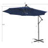 If you are looking for such a cantilever patio umbrella, this 10 feet outdoor solar LED offset umbrella will create a shady relaxation outdoor place on a sunny afternoon for you. Featured with an 8-rib structure and thickened metal pole coated with a rust-resistant finish, this cantilever outdoor umbrella shows excellent firmness and lasting performance. Plus, 32 LED solar lights let you enjoy the night time with your family and friends in an atmosphere of relaxed informality. Meanwhile, the tilting adjustment and hand-crank mechanism make sure efficient all-round sun protection. And the sun-protective fabric with high color fastness will block up extra sunlight while keeping fadeless. A weighted base (sold separately) is required to increase the stability of the cantilever umbrella. Detailed instructions and all parts are included in the package, helping with your assembly. In a word, this hanging outdoor umbrella will be practical decoration on various outdoor occasions.