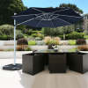 • All-Direction Shade Design: With the 11 feet diameter offset canopy, this deluxe patio cantilever umbrella can create a spacious area of shade that can be used over tables and swimming pools to protect you from the summer sun, sudden rain, harmful rays, and dazzling light. What's more, the outdoor cantilever umbrella can be rotated 360 degrees to supply you with more sunshade solutions.