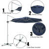 • High-quality Polyester Fabric: Crafted with 240 GSM polyester fabric, this canopy is sun-proof, fadeless, weather-resistant, and hard-wearing. Thanks to the premium fabric, this patio cantilever umbrella is durable enough for long-lasting outdoor use. Furthermore, the design of vents at the canopy top enables enhanced air circulation and stability.