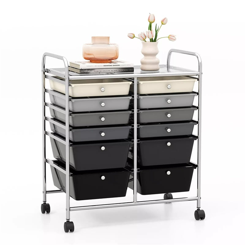 • 12 Drawers for Ample Storage: With 12 drawers including 4 large and 8 small, this rolling storage cart provides generous space for organizing a variety of items. The drawers slide smoothly, making it easy to access your belongings, while the space-saving design ensures everything stays neatly in place.