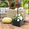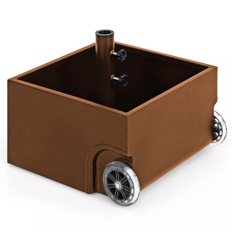 Compatible and versatile fillable umbrella base planter with wheels! This 170lbs capacity fillable umbrella base consists of a powder-coated heavy metal structure, ensuring excellent stability and durability. Moreover, the large 150 lbs capacity allows you to fill the umbrella base with sand or soil for withstanding windy weather. Also, it comes with 2 adapters to match 1.5"-1.9" poles and a 7.5 ft-11 ft patio umbrella. At the same time, you can keep the pole firmly in place with the hand-turn knob. The simple installation steps will save you a lot of time. It is worth mentioning that the unique box design makes this umbrella base serve as a garden flower box. Moreover, the drainage holes at the bottom prevent excessive water accumulation from affecting the free breathing of plant roots. What's more, considering that you may often use the umbrella outdoors, this heavy-duty filled umbrella base is designed with two wheels, allowing you to easily take it to the poolside, patio, or garden.