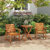 Experience ultimate comfort and durability with these 2 pcs hardwood patio chairs. Crafted from high-grade hardwood, these patio dining chairs are built to withstand the test of time. The ergonomic design with 102° inclined backrests and wide armrests provide you with a comfortable sitting experience. Designed with breathable slatted seats to keep you cool even in hot weather. Furthermore, the reinforced crossbars on both sides enhance stability. Therefore, these ergonomic natural wood patio chairs are a fabulous addition to any outdoor space, such as the backyard, front porch, balcony, or poolside.