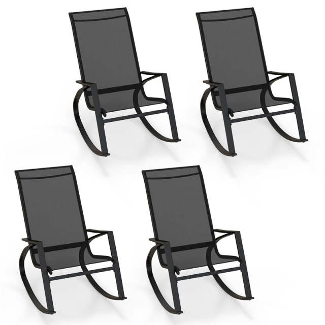 • High-Level Stability: Constructed with a heavy-duty metal frame and equipped with high-strength back support, these sling patio rockers maintain stability on various surfaces, ensuring safe and secure seating at all times.