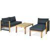 3 Piece Acacia Wood Patio Sofa Set L-Shape Outdoor Furniture Set Garden Conversation Set with 2 Loveseats, Coffee Table, Back & Seat Cushions