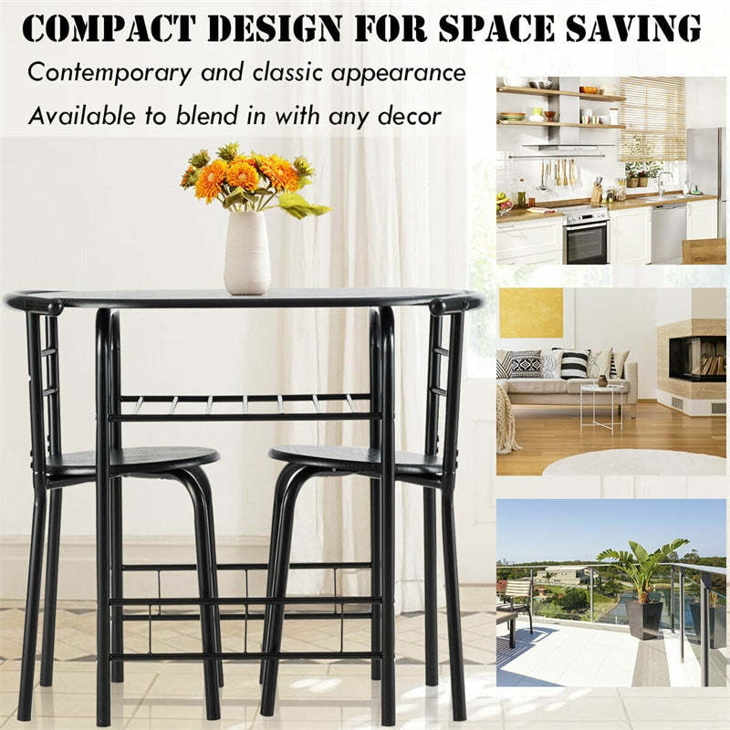3-Piece Space-Saver Bistro Set Dining Table Chair Set with Shelf Storage