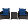 3PCS Rattan Patio Furniture Set with Washable Cushions & Tempered Glass Coffee Table, Outdoor Wicker Conversation Set for Garden, Balcony