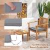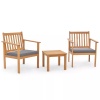 3 Pieces Patio Wood Furniture Set Acacia Wood Chairs & Coffee Table Set with Soft Seat Cushions & Slatted Design for Porch Yard Balcony