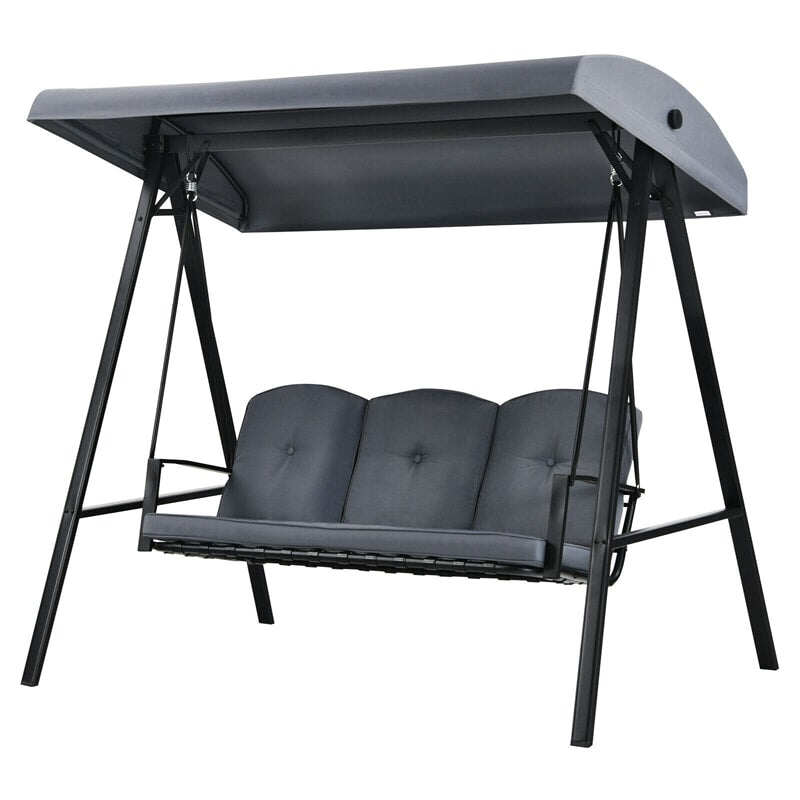 Outdoor 3-Person Patio Swing with Adjustable Canopy & Removable Cushions, All-Weather Steel Frame Porch Swing for Garden, Poolside, Backyard