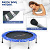 Designed with high-elastic PP mats, this kids mini rebounder trampoline offers an excellent jumping experience to promote bone growth and blood circulation. Taking your kids' safety into consideration, the safety padded cover and fully covered handrail are equipped to protect your children. The quiet bungee cords and anti-slip foot pads avoid disturbing others while jumping. After using this mini trampoline, you can fold it into a compact size for easy movement and storage.