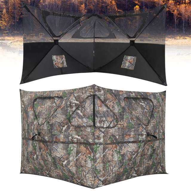 • All-weather Protection: This 360° one-way see-through hunting blind is crafted from waterproof and wear-resistant 150D Oxford fabric, ensuring super durability and long-lasting performance. Moreover, The wind ropes and reliable hub systems provide a safe experience in varying conditions.