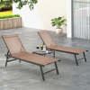 Relax comfortably with this 3-piece outdoor chaise lounge chair set with side table! Crafted from high-quality aluminum, the main frame of the 3 pieces features high stability and durability. The 2 chaise lounges are designed with a 6-level backrest adjustment that allows you to find the perfect angle for ultimate coziness and relaxation, thus bringing you quite a comfortable sitting experience. Likewise, the side table is great for holding your drinks, snacks, and other essentials. Perfect for the poolside, backyard, patio, or any outdoor space, this patio lounge chair set is an ideal choice for you to sunbathe, read books, or just have a sleep. Upgrade your outdoor space with this stylish and durable 3-piece patio chaise lounge set!