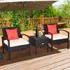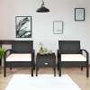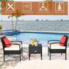 3 PCS PE Rattan Wicker Patio Conversation Set with Removable Cushion & Coffee Table